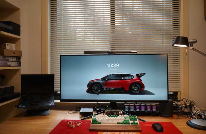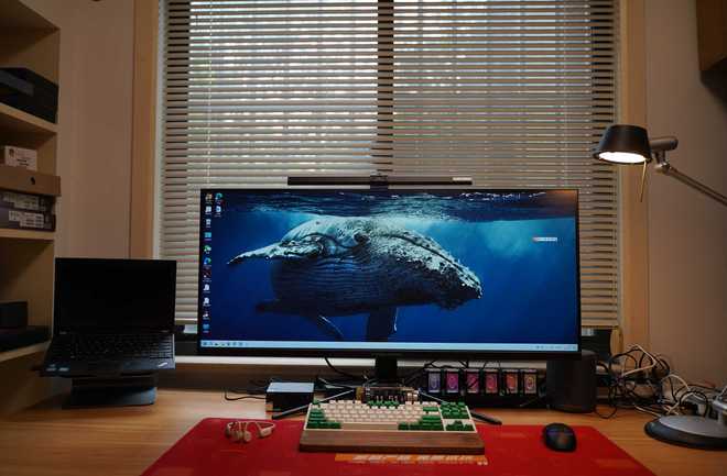 在家里的书房,我日常使用一款宽屏幕显示,搭配一个桌面光源,欧司朗的铝素灯上,这款书客屏幕挂灯安装好后,完全不会占用桌面空间,让原本拥挤的桌面显得整洁了不少。也毫无违和感,反而为书房增添了一丝科技感。