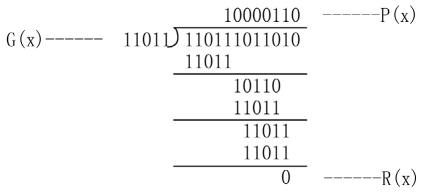 0。 校验过程: 假 如 信 息 在 传 输 过 程 中 没 有 受 到 影 响 而 发 生 错 误 的话,接收到的带有循环冗余校验码的数据串序列必定可以被 在发送端所自定义的生成多项式整除,也就是: